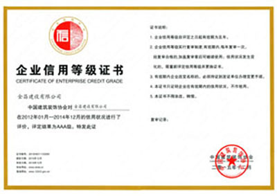 據(jù)悉,全國建筑業(yè)AAA級信用企業(yè)評選,是由住建部全國建筑市場信用體系建設(shè)工作試點單位中國建筑業(yè)協(xié)會負責組織,主要考察企業(yè)綜合素質(zhì)、經(jīng)營能力、財務指標、管理指標、競爭力指標、信用記錄指標等。全國建筑業(yè)AAA信用企業(yè)有效期3年,是衡量我國建筑業(yè)企業(yè)綜合能力的重要標準,具有很高的行業(yè)含金量。我司再次榮獲此項國家級殊榮,是行業(yè)及社會對金昌的高度認可。