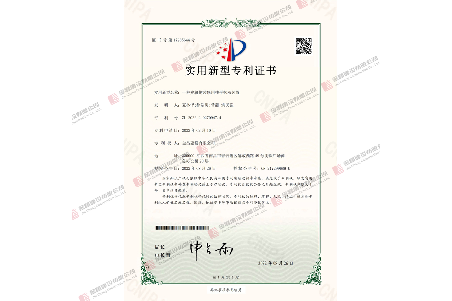 一種建筑物裝修用找平抹灰裝置